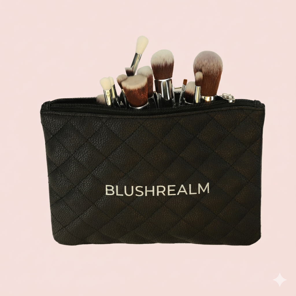 Experience the magic of flawless makeup application as you use this complete set to highlight, contour, and define your features. Our makeup brushes feature elegant pink handles with black components, adding a touch of sophistication to your daily routine. Conveniently stored in a portable faux leather case with compartments for each brush, you can create stunning looks wherever you go. Soft, high-quality, vegan, synthetic bristles ensure a gentle touch on your skin, and they won't shed.